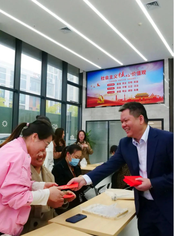 在这特别的日子,首先由刘总为融创微女神们送上了“宠式”祝福。刘总通过分享个人的成长及婚恋故事,高度肯定了女同胞们在工作和家庭中的重要贡献,也见证了女神们“温柔又坚定”的力量。研发岗位上的女神们,一丝不苟,项目任务敢拼敢冲;体系建设、生产岗位上的女神们,严于律己,精益求精;后勤岗位上的女神们,兢兢业业,默默奉献......