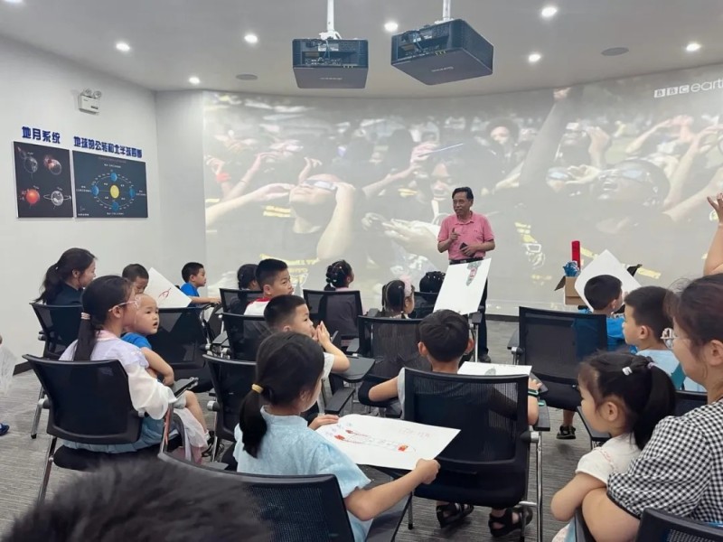 知识渊博的讲解员带领着孩子们去探索地球自转和公转的奥秘,去了解太阳系的每一位成员,去体验宇宙、恒星的演变,还观察了一颗自天外而来的星辰访客——陨石.....