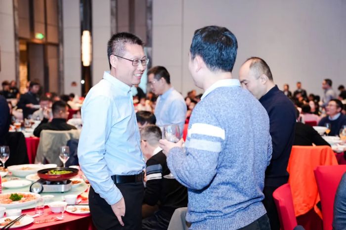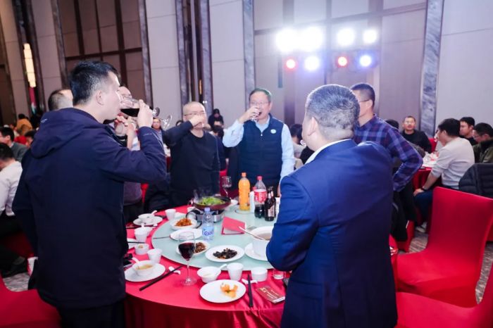 晚宴时分,珍馐美馔间,员工与嘉宾围坐畅聊,分享喜悦与收获,欢声笑语不断,情谊在推杯换盏中升温。
