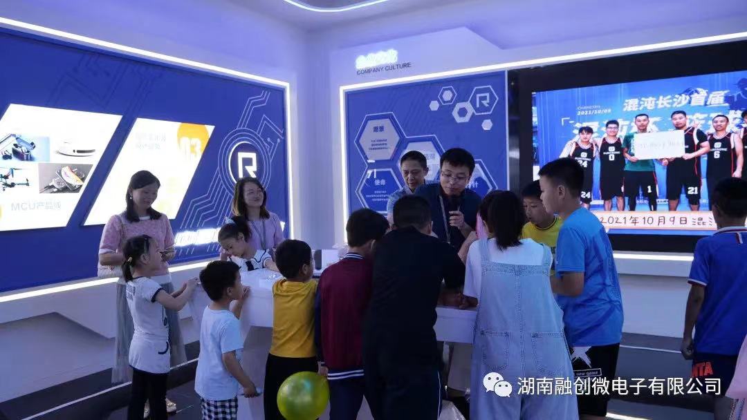 在了解了芯片的基本知识之后,孩子们对各类芯片的实际功能和应用产生了浓厚的兴趣。董事长杨国庆先生亲自带领小朋友们参观公司展厅,为他们讲解和展示芯片在实际应用中的神奇魔力。